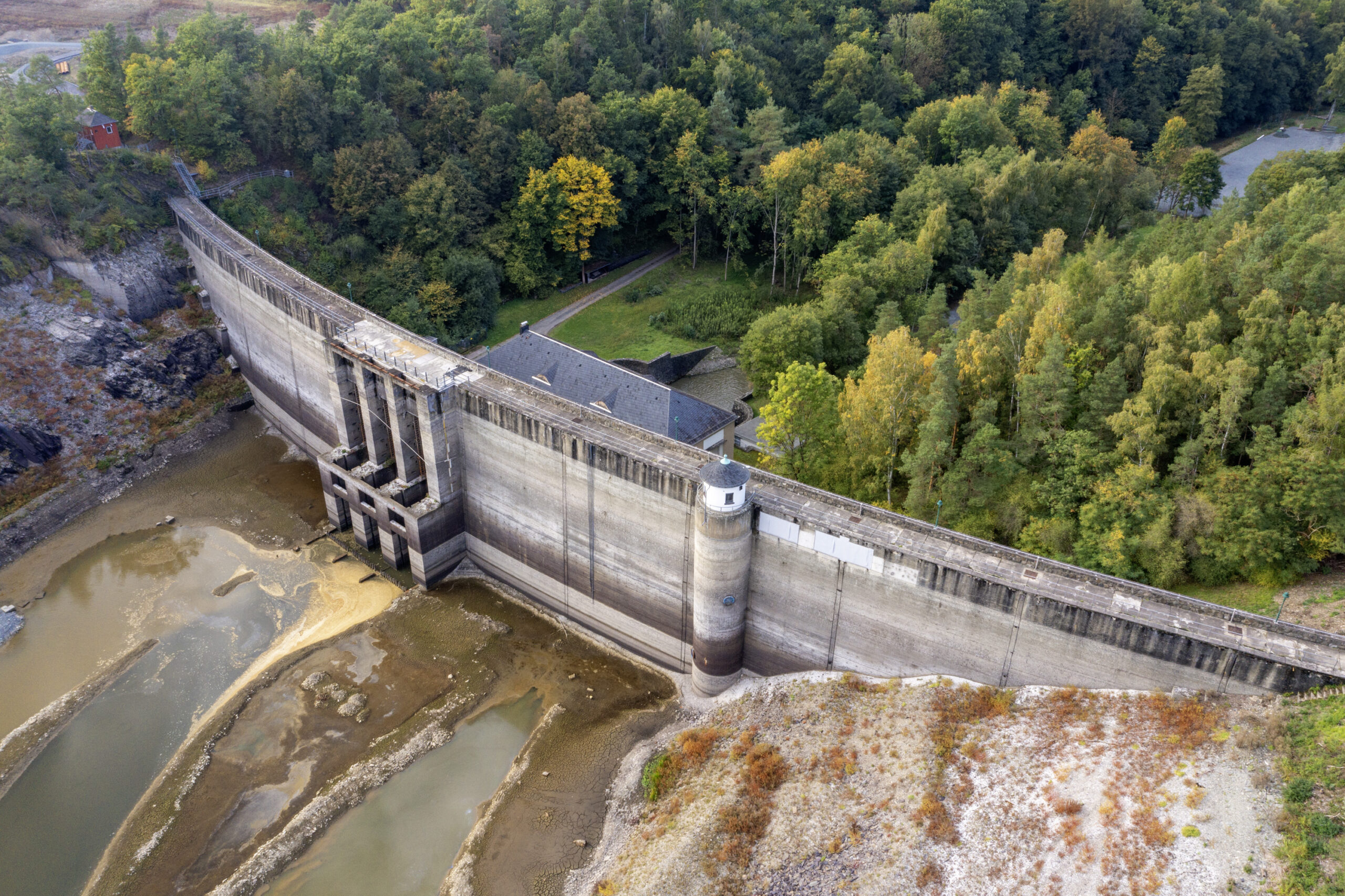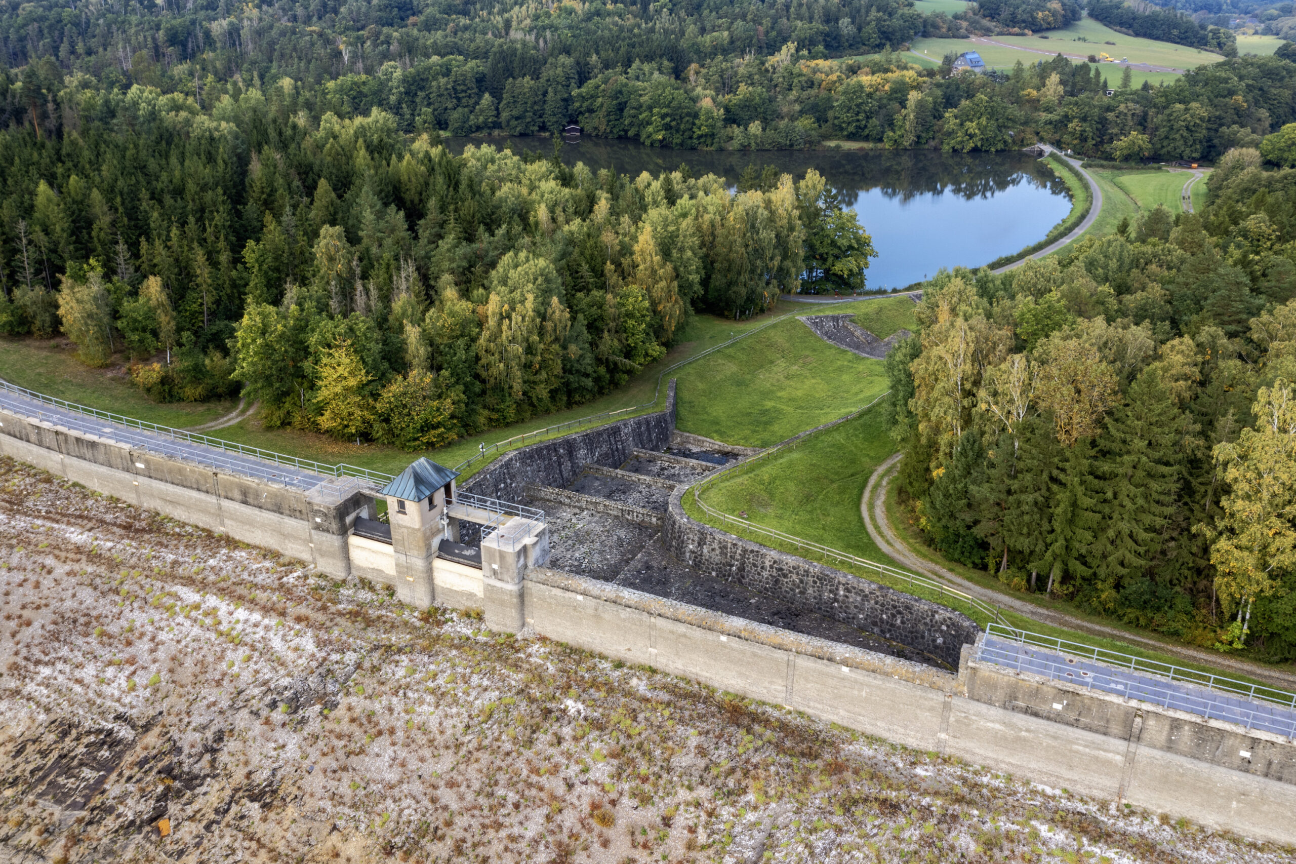 Hauptsperrmauer mit leerem Stauraum